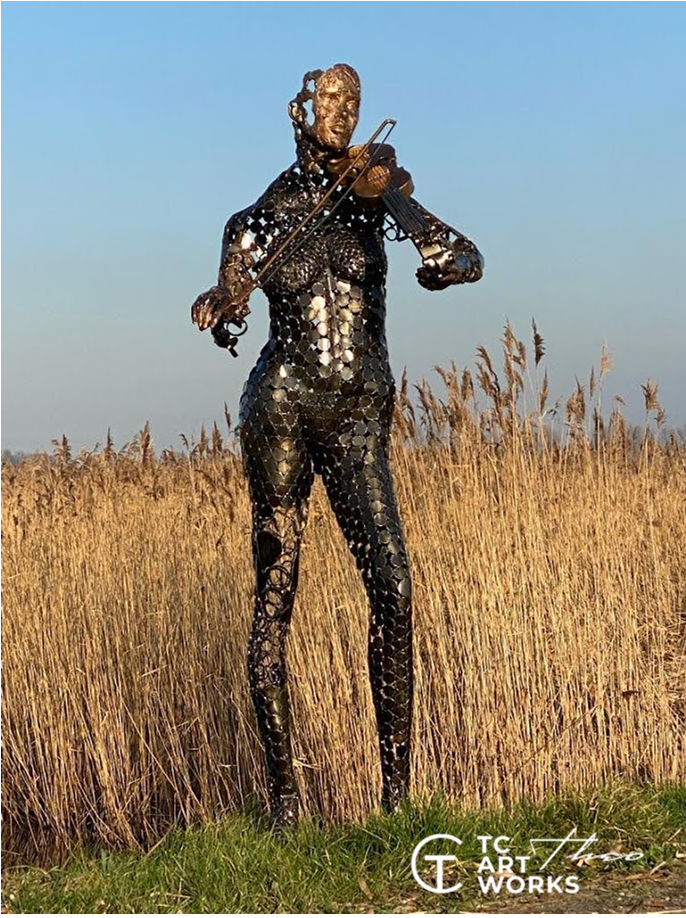 An elegant violin-playing female sculpture, makes you briefly dream away to the heavenly melodies of André Rieu.