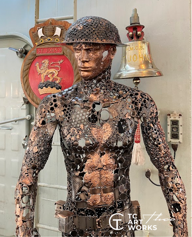 Deze sculptuur kreeg de titel “The Scheldt Pocket Warrior” en werd aan Canada geschonken naar aanleiding van de 80ste herdenking van de bevrijding van onze regio door de Canadese troepen tijdens WO II .